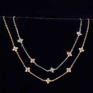 Sparkling Zircon Clover Design: Features elegant four-leaf clover charms inlaid with brilliant cubic zirconia, symbolizing luck, faith, and timeless beauty.