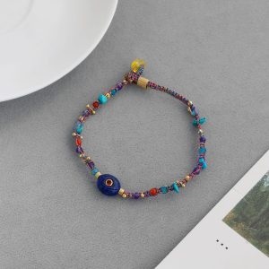 - Handcrafted Braided Design: The bracelet features an intricate, colorful hand-woven cord base, offering a unique “bohemian” or ethnic aesthetic.