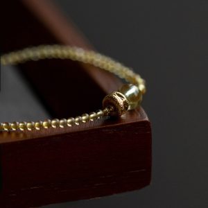 Gold-Tone “Luck” Charm: Includes a finely crafted sand gold (shajin) mani wheel or transfer bead, traditionally believed to bring good fortune and positive energy to the wearer.