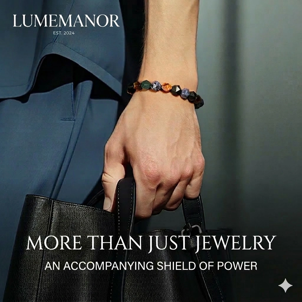 • Unique Geometric Faceted Design Unlike traditional round beads, these gemstones are precision-cut into bold, 10mm geometric shapes. This modern, architectural aesthetic gives the bracelet a rugged yet refined masculine look.