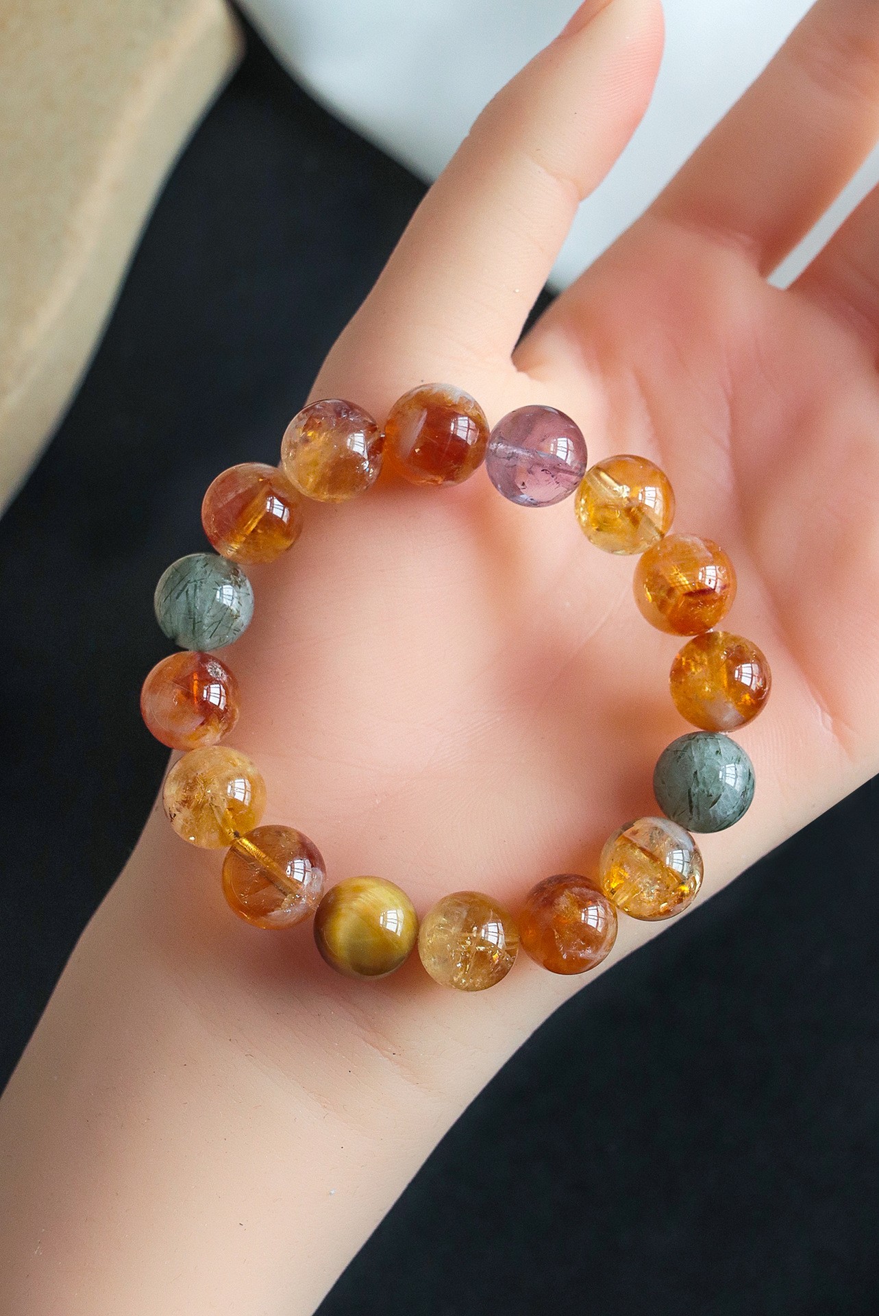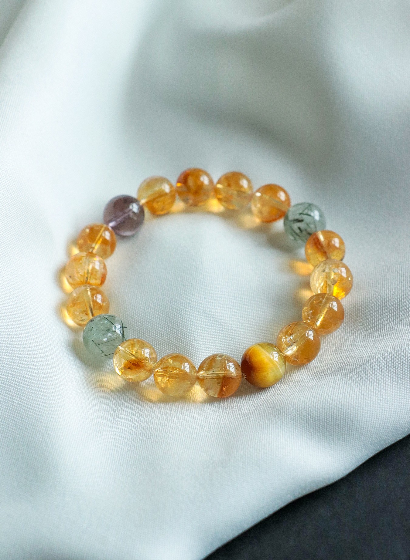 Authentic Natural Crystals: Hand-selected high-quality Natural Citrine and Gold Tiger Eye beads, showcasing unique internal textures and vibrant colors.