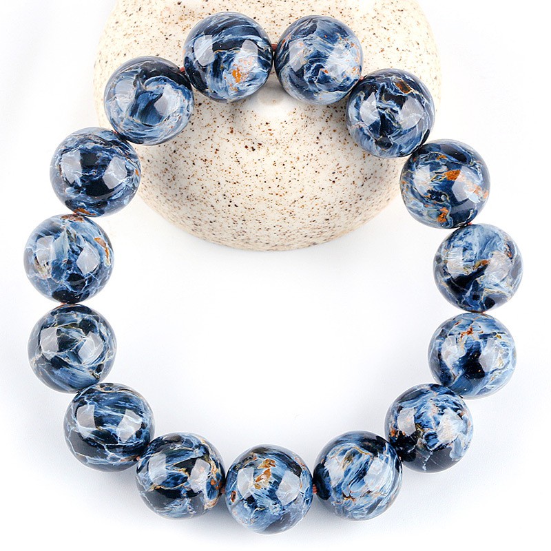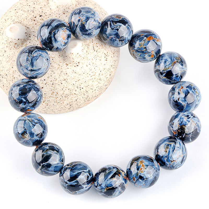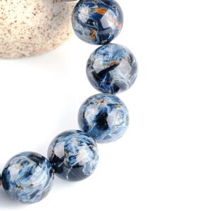Stunning “Storm” Texture: Each bead showcases a mesmerizing swirl of deep blue, gold, and grey, resembling a stormy sky.