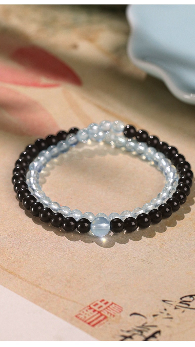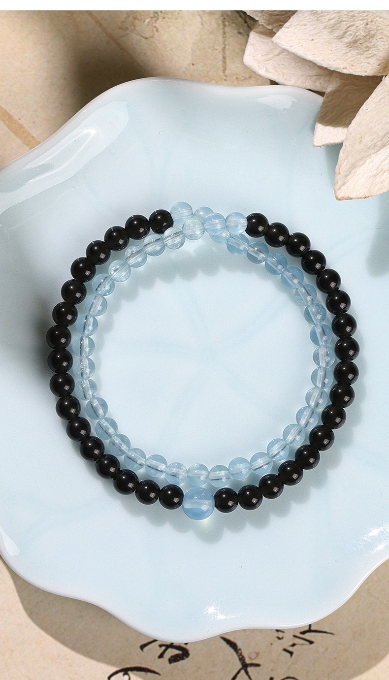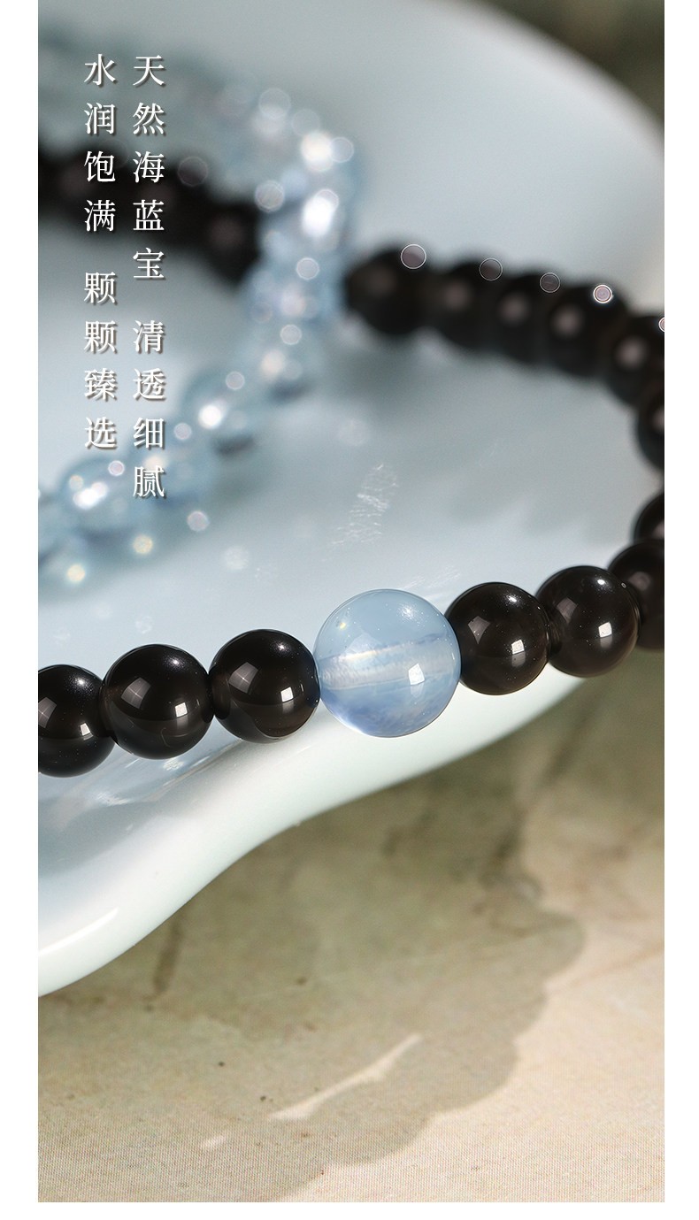 Dual-Crystal Synergy: Features a stunning combination of deep Natural Obsidian and serene Aquamarine for a sophisticated, high-contrast look.